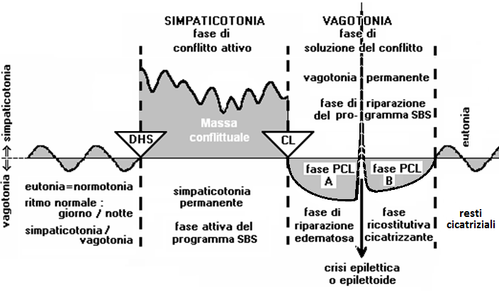 Ora, se l’individuo riesce a risolvere il conflitto, quindi passa attraverso una microfase detta di conflittolisi (CL), allora dà il via ad un ripristino dell’equilibrio dell’organismo.